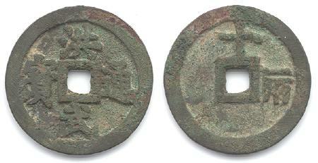 S-1202, бронза 1 кэш. Аверс: «T 'IEN-CH' I T 'UNG-PAO». Реверс: пустой, мята не указана. Существует ряд вариаций этого типа с точками в различных положениях на реверсе. Значение этих точек не известно.