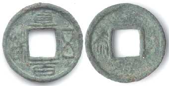 F $60,00 VF $75,00Опыты Ван Манга двумя столетиями ранее и несколько раз после него, продемонстрировали, что фидуциарная чеканка такого рода может нарушить экономику, вызывая трудности для населения в целом. Обычно подобная ситуация не могла продолжаться долго, но вся монетная чеканка, известная с этого периода (у всех трех династий), имеет сходную природу. У людей, должно быть, не было другого выбора, кроме как принять реформы.